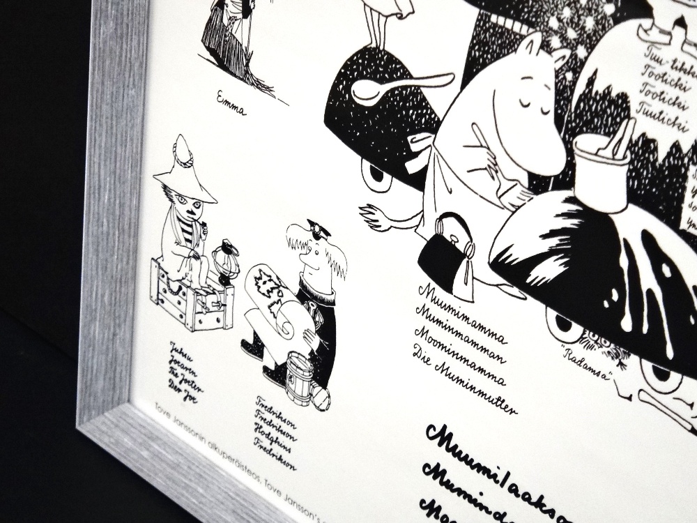 昨日のモノクロムーミン谷マップの額装品。