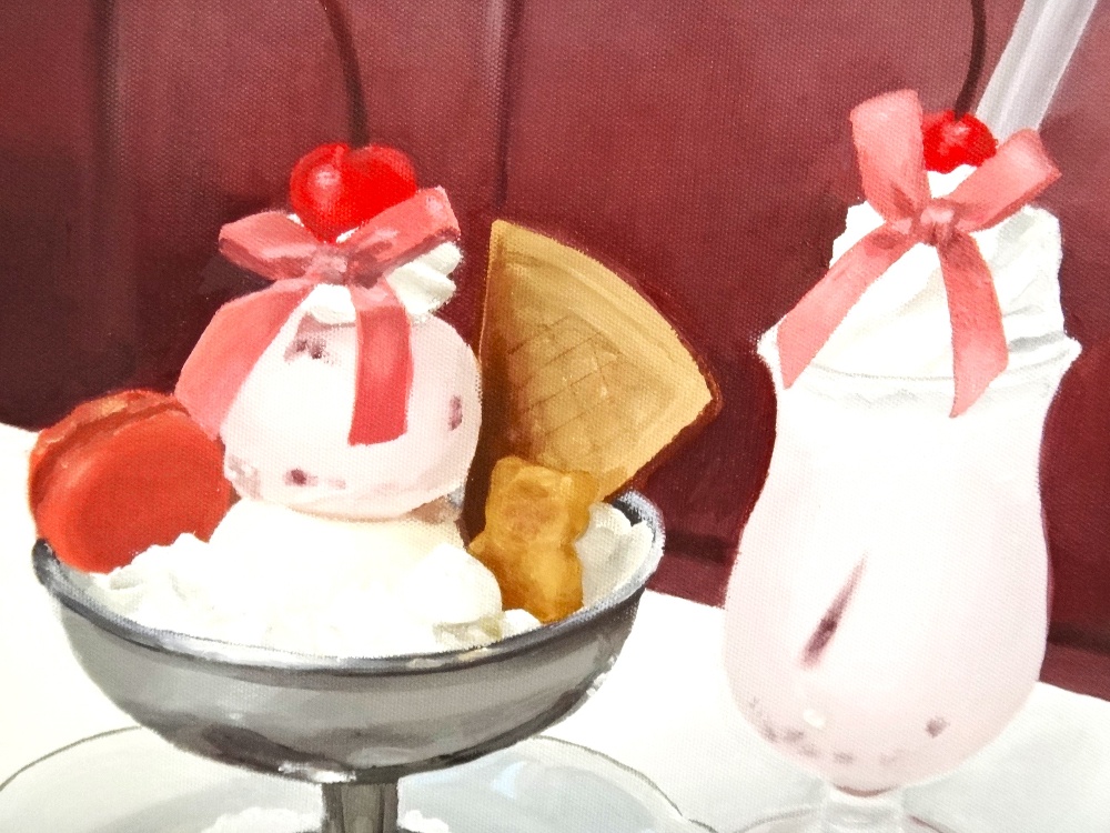 ファミレスのパフェが描かれています。